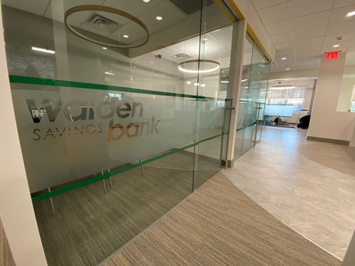Next, we have added some frosting to the glass office walls to provide some extra privacy and branding!