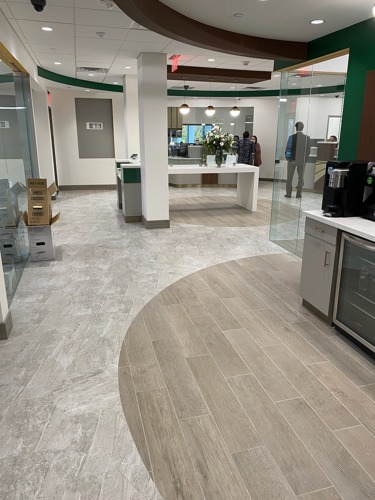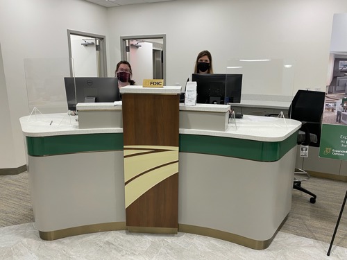 Once you walk through the front doors, you will enter our lobby and see our newly renovated greeter station! Prior to construction, this area served as a connection between the branch and our Reception Area. Now, it will serve as a fully functional transaction station!
